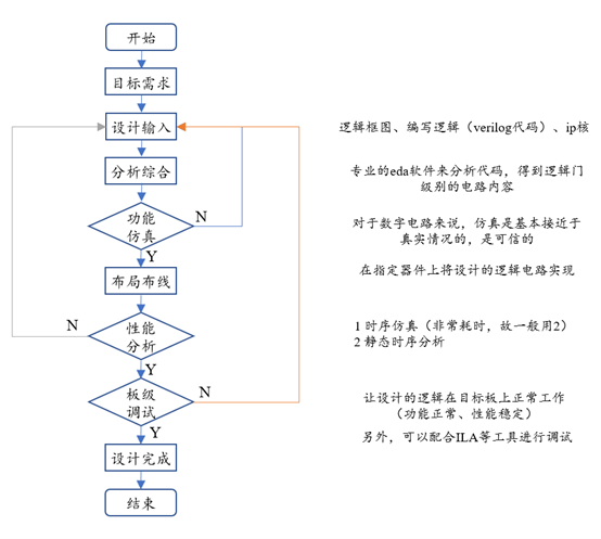 围绕着“根据预期目标写代码,调试功能及性能,最终上板运行”的思路,一般的开发思路,如下